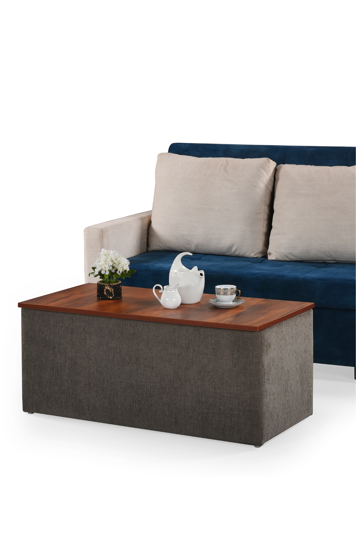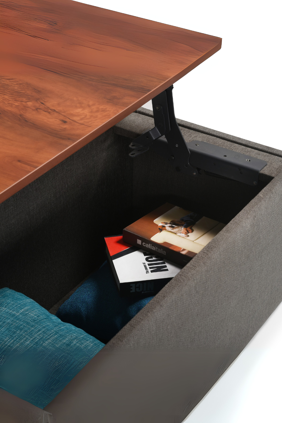 A sleek coffee table with a smooth lift-up top, hidden storage, and multi-functional design.